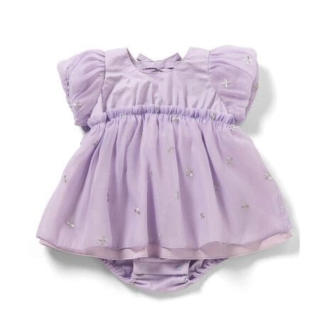apres les cours(アプレレクール)のカバーオール・ロンパース「【リンク】フラワーラメ刺繍ロンパス_アプレレクールマシェリ」は、やさしいニュアンスのナチュラルなデザイン。ベビーギフトや出産祝いの主役にも♪