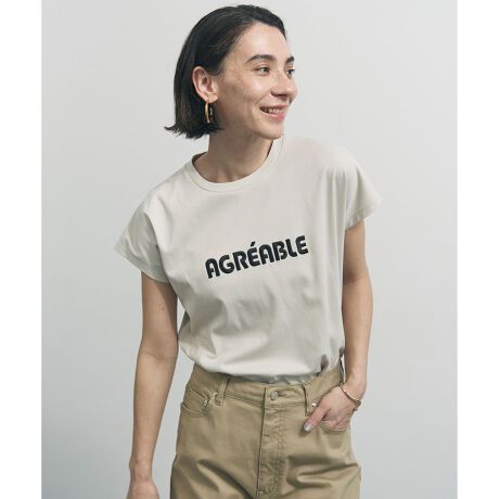 光沢のあるロゴ刺繍が、コーデのワンポイントになります。カジュアルすぎないスッキリとしたネックラインで、ゆとりがありながらも綺麗に見える絶妙なサイジングに。軽やかに仕上げたフレンチスリーブは、気になる二の腕も見せすぎないバランスに仕上がっています。前後差のある裾のシャツテールデザインで、トップスアウトもおしゃれに決まります。カラーによって異なるロゴデザインなので、気分に合わせてお好みの色や柄をお選びいただけます。ロゴの文字は、一日を快適に過ごしていただけるような前向きな言葉をアレンジしています。