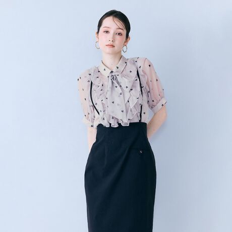 ハートプリントボウタイ付きブラウス