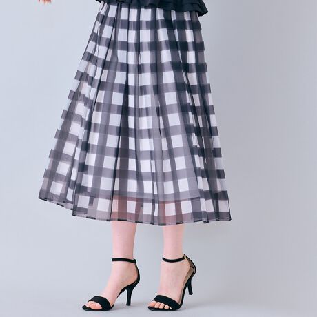 ・大きめのギンガムチェックが大人の印象でかわいらしさの中にもモード感をプラスしたAudie a Musesオリジナルのプリントスカート。