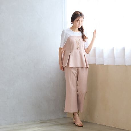 ・カットソーにビスチェ切り替えたデザインが大人フェミニンな印象に