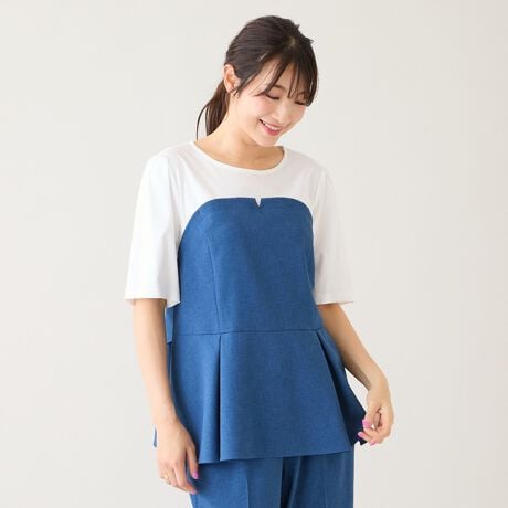 ・カットソーにビスチェ切り替えたデザインが大人フェミニンな印象に