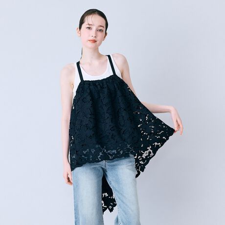 ・刺繍レース素材をふんだんに使用した華やかさがUPするキャミブラウス。