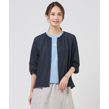■デザインシアー素材で軽やかに仕立てた、ジップアップブルゾン。襟元に寄せた繊細なギャザーが顔周りに女性らしいニュアンスを与え、カジュアルになりがちなブルゾンを上品な印象に仕上げました。裾にはドロストを施しており、その日の気分やボトムスに合わせてシルエットの調整が可能です。さっと羽織るだけで今っぽい抜け感のあるスタイリングが完成し、オフィスワークから休日のお出かけまで、幅広いシーンで活躍します。カラーは、落ち着いた印象のライトグレー(#003)、肌なじみの良いベージュ(#033)、シーンレスに活躍するネイビー(#075)の3色展開です。