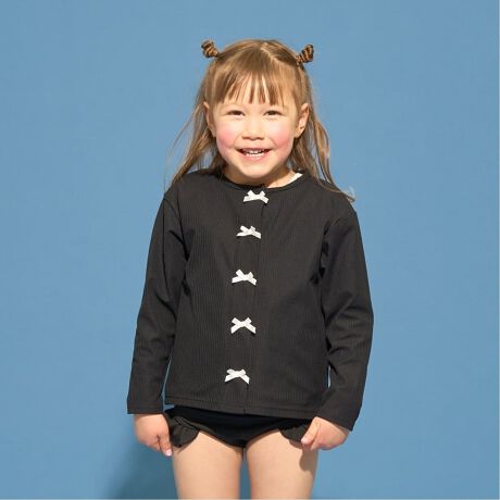 【SWIM】【UVカット】リボン付きカーディガン型ラッシュガード