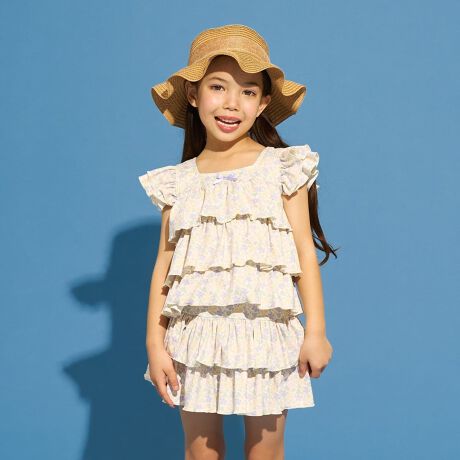 【SWIM】【UVカット】ティアードトップス・ティアードスカートセパレート水着