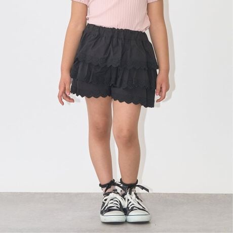 ・ハートスカラップの刺しゅうが華やかなティアードデザインのスカパン