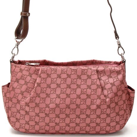 [型番:PXLHFDS1]ソフトなナイロンにユリのプリントをしたカジュアルなバッグシリーズ。タックを取ってフォルムはふんわりと女性らしさを演出。ポケットが豊富で持ち手も取り外し可能で機能性にも優れています。