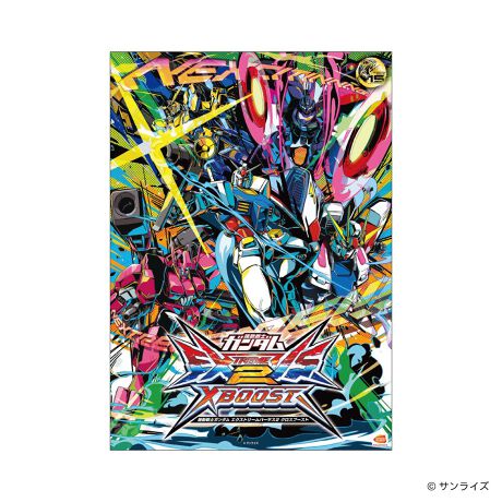 「機動戦士ガンダム エクストリームバーサス2 クロスブースト」のキービジュアルを使用したA2サイズポスターです。おうちに飾ればまるであの時のゲームセンター!15周年の記念ロゴの箔押しも入った少しリッチな使用です。