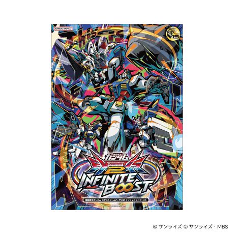 「機動戦士ガンダム エクストリームバーサス2 インフィニットブースト」のキービジュアルを使用したA2サイズポスターです。おうちに飾ればまるであの時のゲームセンター!16周年の記念ロゴの箔押しも入った少しリッチな使用です。