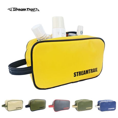 Stream Trailの防水リュックにも使われている防水素材、ターポリンを使用した小型ポーチ。旅行や出張などで持ち運ぶトラベル用シャンプーや歯ブラシなどのアメニティーセットを入れたり、女性ならメイクポーチとして化粧品を入れたりなど、小物入れに最適です。カラーバリエーションも豊富にご用意しています。