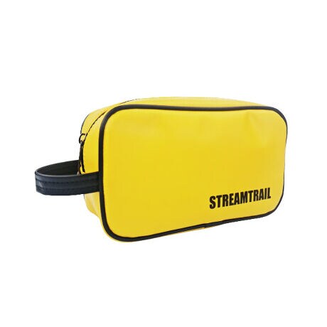 Stream Trailの防水リュックにも使われている防水素材、ターポリンを使用した小型ポーチ。旅行や出張などで持ち運ぶトラベル用シャンプーや歯ブラシなどのアメニティーセットを入れたり、女性ならメイクポーチとして化粧品を入れたりなど、小物入れに最適です。カラーバリエーションも豊富にご用意しています。