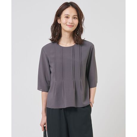 シアー感とピンタックが織りなす、春らしい爽やかさがポイントのチェック柄カットソー