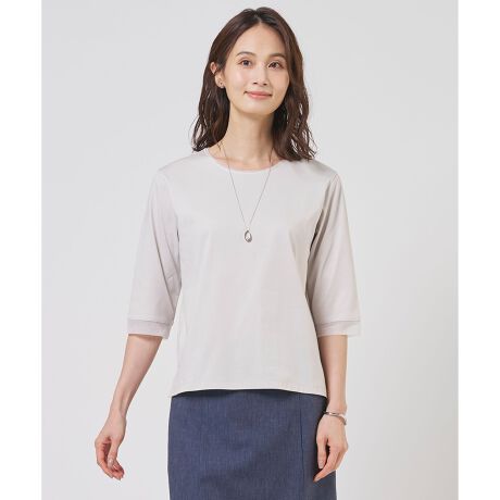 ■素材使いやすい適度な厚みのオリジナルスムース素材を使用。シルケット加工で光沢感をプラスし、上品できれいめな印象に仕上げました。