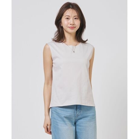 襟元のシアー感が上品なアクセントに、ノースリーブカットソー