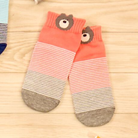 履き口のフロントに、愛嬌のある くまの顔柄 を編み込んだショートソックス。