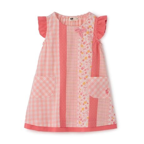 小花やチェック、ドット・・・切り替え風のプリントとギンガムを使ったワンピース。
