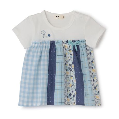 小花やチェック、ドット・・・切り替え風のプリントとギンガムを使ったAラインシルエットのチュニック。