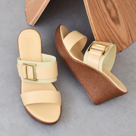 クッション性のよいインソールが魅力の「イタリアンシューメーカーズ」のウェッジヒールサンダル。