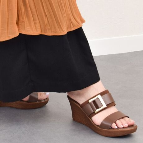 クッション性のよいインソールが魅力の「イタリアンシューメーカーズ」のウェッジヒールサンダル。