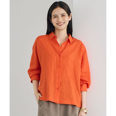日差しも暑さもやさしく和らぐリネンシャツ■デザインゆったりとした身幅で、リラックス感のある着心地が魅力のリネンシャツです。身幅を広めにすることで、夏の日差しをやわらかく遮り、軽い羽織りとしても活躍します。ドルマンスリーブからカフスにかけては、着用しやすいよう袖幅を程よく整え、バランスの取れたシルエットに仕上げています。カフスを折り返して肘下で着用するアレンジも可能で、長い夏シーズンを通して活躍する一着です。また、カリグラフィ作家とのコラボレーションアイテムとして、左身頃にはコンパスと「JJ」をモチーフにした同色刺繍を施し、さりげないアクセントを添えています。■素材毛羽立ちが少なく、なめらかな肌触りと美しい光沢感が特徴のサフィランリネン(1778年創立)を使用しています。フランス産の麻原料を用い、トルコの老舗Esenteks社にて紡績から染色、織りまで一貫して仕上げた60ライトキャンバスリネン素材です。長い歴史と高い技術に裏打ちされた、価値のあるリネンならではの風合いをお楽しみいただけます。オフ(002)とブラウン(035)はやや太番手の糸を使用しています。接触冷感機能付きです。