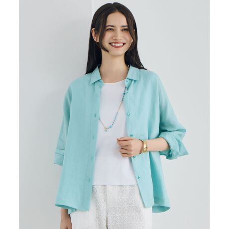 日差しも暑さもやさしく和らぐリネンシャツ■デザインゆったりとした身幅で、リラックス感のある着心地が魅力のリネンシャツです。身幅を広めにすることで、夏の日差しをやわらかく遮り、軽い羽織りとしても活躍します。ドルマンスリーブからカフスにかけては、着用しやすいよう袖幅を程よく整え、バランスの取れたシルエットに仕上げています。カフスを折り返して肘下で着用するアレンジも可能で、長い夏シーズンを通して活躍する一着です。また、カリグラフィ作家とのコラボレーションアイテムとして、左身頃にはコンパスと「JJ」をモチーフにした同色刺繍を施し、さりげないアクセントを添えています。■素材毛羽立ちが少なく、なめらかな肌触りと美しい光沢感が特徴のサフィランリネン(1778年創立)を使用しています。フランス産の麻原料を用い、トルコの老舗Esenteks社にて紡績から染色、織りまで一貫して仕上げた60ライトキャンバスリネン素材です。長い歴史と高い技術に裏打ちされた、価値のあるリネンならではの風合いをお楽しみいただけます。オフ(002)とブラウン(035)はやや太番手の糸を使用しています。接触冷感機能付きです。