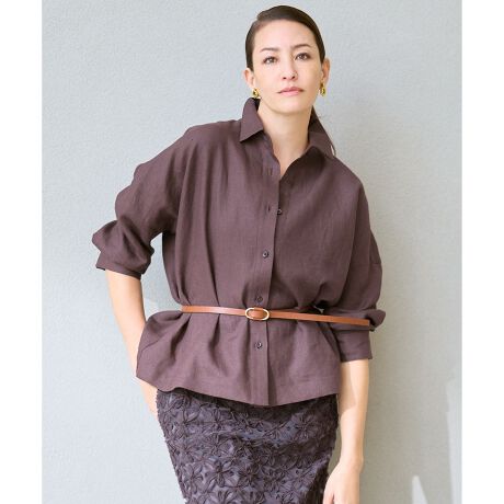 日差しも暑さもやさしく和らぐリネンシャツ■デザインゆったりとした身幅で、リラックス感のある着心地が魅力のリネンシャツです。身幅を広めにすることで、夏の日差しをやわらかく遮り、軽い羽織りとしても活躍します。ドルマンスリーブからカフスにかけては、着用しやすいよう袖幅を程よく整え、バランスの取れたシルエットに仕上げています。カフスを折り返して肘下で着用するアレンジも可能で、長い夏シーズンを通して活躍する一着です。また、カリグラフィ作家とのコラボレーションアイテムとして、左身頃にはコンパスと「JJ」をモチーフにした同色刺繍を施し、さりげないアクセントを添えています。■素材毛羽立ちが少なく、なめらかな肌触りと美しい光沢感が特徴のサフィランリネン(1778年創立)を使用しています。フランス産の麻原料を用い、トルコの老舗Esenteks社にて紡績から染色、織りまで一貫して仕上げた60ライトキャンバスリネン素材です。長い歴史と高い技術に裏打ちされた、価値のあるリネンならではの風合いをお楽しみいただけます。オフ(002)とブラウン(035)はやや太番手の糸を使用しています。接触冷感機能付きです。