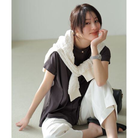 ・ウエストまわりに自然なゆとりを持たせ、体のラインを拾いにくいデザインに・首元に程よいゆとりをプラス・一枚で着映えする立体的なシルエット