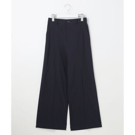 ・オンオフ幅広く活躍するワイドパンツ・快適なストレッチ性と程よくラフな生地感が特徴・自然なスタイルアップを演出する股上の深さと美脚見えが狙えるシルエットが魅力・お腹周りのラインも気になりにくいタック無しのすっきりデザイン・ゆとりを感じるこだわりのパターン設計・センタープレスがきちんと感を演出し綺麗め通勤スタイルにもマッチ