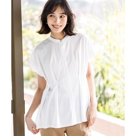 ・ウエストまわりに自然なゆとりを持たせ、体のラインを拾いにくいデザインに・首元に程よいゆとりをプラス・一枚で着映えする立体的なシルエット
