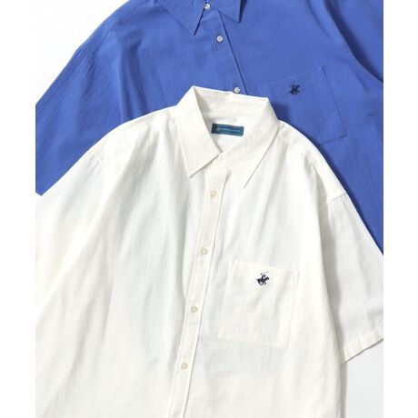 BEVERLY HILLS POLO CLUB/ビバリーヒルズポロクラブ オーバーサイズ ハイツイストコットン 無地 ストライプ チェック ロゴ ワンポイント刺繍 レギュラーカラーシャツ/半袖シャツ/レディース メンズ