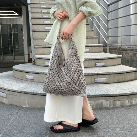 ・ミックスヤーンで編み上げた、表情豊かなペーパー素材の三角バッグ