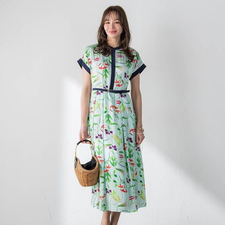 様々な種類のLilyを使用した作品をプリントした上品なシャツワンピース。