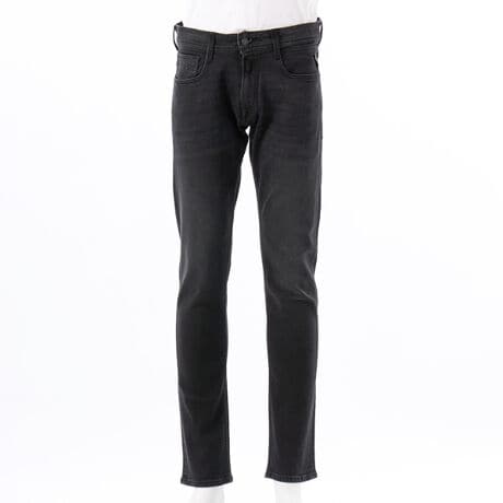 【ROCCO / ロッコ】レギュラーウエスト、ジップフライ、腰から腿周りがゆったりめのコンフォートなストレートフィット。<br>11オンスのブラックストレッチコットンデニムを使用し,ブラックのオーバーダイ加工とダークウォッシュにより、深みのある色合いとヴィンテージ感を演出しています。<br>酵素ウォッシュと自然乾燥、手作業によるスクレイピング加工により、独特の風合いと立体感を表現。コインポケットとバックポケットにはReplayの象徴的なガルウィングステッチを施し、片方のバックポケットには「R」刺繍入り。フロントポケットのひとつにはブランドロゴ入りのインサートが付いています。洗練されたデザインと快適な履き心地を兼ね備えた一本です。