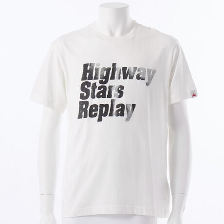 [型番:M30352660]コットンジャージークルーネックTシャツ。フロントにはコントラストとグラデーションの効いたレタリングプリントを配しました。レギュラーフィット<br>REPLAY HPのLOOKBOOKでコーディネートをチェックしてください!