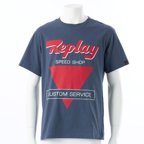 [型番:M30512660]コットンジャージークルーネックTシャツ。前面にマキシサイズでバイカーカスタムレタリングプリントが施され、左袖口にはアイコンのアーカイブロゴタグをプラス。レギュラーフィット