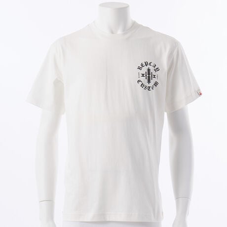 [型番:M30522660]コットンジャージークルーネックTシャツ。前面左胸と背面にはマキシサイズで円形のカスタムレタリングプリントが施され、左袖口にはアイコンのアーカイブロゴタグをプラス。レギュラーフィット