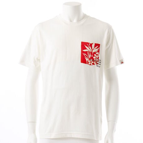 [型番:M30652660]コットンジャージークルーネックTシャツ。左胸にレッドカラーのアロハプリントのポケットとレタリングプリントを施し、左袖口にはアイコンのアーカイブロゴタグをプラス。レギュラーフィット