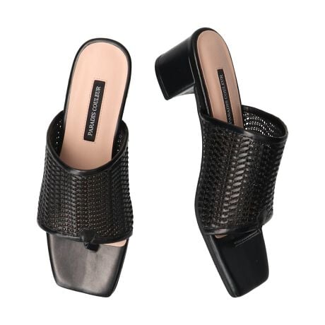 メッシュ素材を使用したスクエアトウのトングサンダルは透け感がありソフトな質感です。