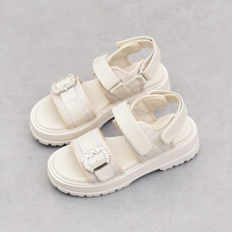 ビジューバックルが可愛い厚底ベルクロサンダルが「パラディクルール」から登場しました。