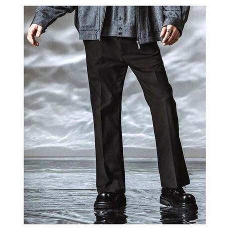 ワイドとブーツカットの中間的バランスで構成し、直線的な落ち感と広がりのニュアンスを併せ持つ一本です。