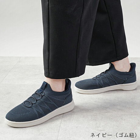 ・伸縮性のあるニット素材のアッパー素材で足にフィット。つま先・かかとの芯材以外、裏地を使っていないので通気性が良く蒸れにくい。