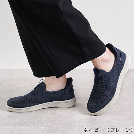 ・伸縮性のあるニット素材のアッパー素材で足にフィット。つま先・かかとの芯材以外、裏地を使っていないので通気性が良く蒸れにくい。