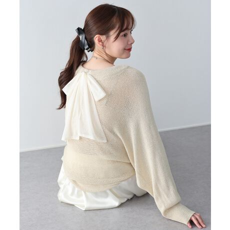 バックリボンメッシュドルマンニット