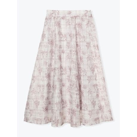 [型番:26580041377]上品なシアー素材にチェック柄×花柄を組み合わせた大人可愛いスカート。柔らかな質感のAラインシルエットが、動くたびに女性らしい華やかな雰囲気を演出します。後ろのゴムで着脱もしやすく、リラックス感のある穿き心地に。さりげなく存在感のあるデザインで、デイリーからオフィススタイルと幅広いコーディネートで重宝します。モデル(青着用)身長:165cmMサイズ着用