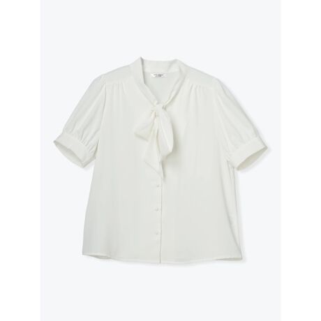 [型番:26580040254]ボリュームたっぷりのボウタイリボンをあしらった上品で華やかなブラウス。タックを寄せたふっくら袖が女性らしさを演出し、気になる二の腕をしっかりカバーします。さらりと薄手の素材がスタイリングを爽やかに魅せ、一枚はもちろん、ジャケットと合わせたレイヤードスタイルにも重宝する着回しやすいアイテムです。モデル(サックス着用)身長:160cmMサイズ着用