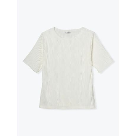 [型番:26550731100]表面感のあるジャガード織りのウェーブ柄が大人上品に魅せる半袖トップス。さらっとした肌触りに伸縮性を備えているので、一日中快適な着心地が続きます。ベーシックなデザインでシャツやブラウスとアウターを選ばず、様々なレイヤードスタイルが楽しめます。