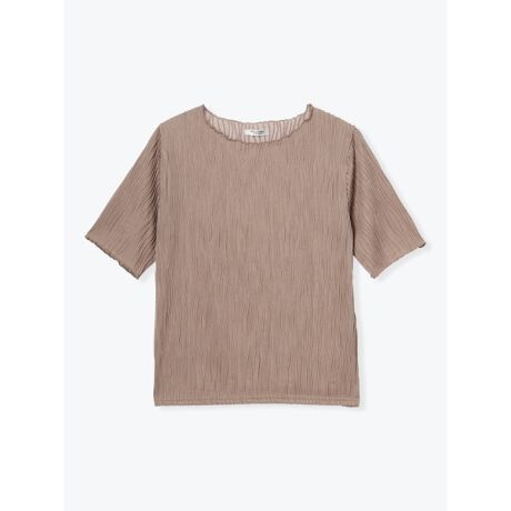 [型番:26550731100]表面感のあるジャガード織りのウェーブ柄が大人上品に魅せる半袖トップス。さらっとした肌触りに伸縮性を備えているので、一日中快適な着心地が続きます。ベーシックなデザインでシャツやブラウスとアウターを選ばず、様々なレイヤードスタイルが楽しめます。