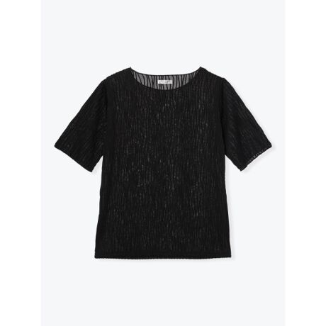 [型番:26550731100]表面感のあるジャガード織りのウェーブ柄が大人上品に魅せる半袖トップス。さらっとした肌触りに伸縮性を備えているので、一日中快適な着心地が続きます。ベーシックなデザインでシャツやブラウスとアウターを選ばず、様々なレイヤードスタイルが楽しめます。