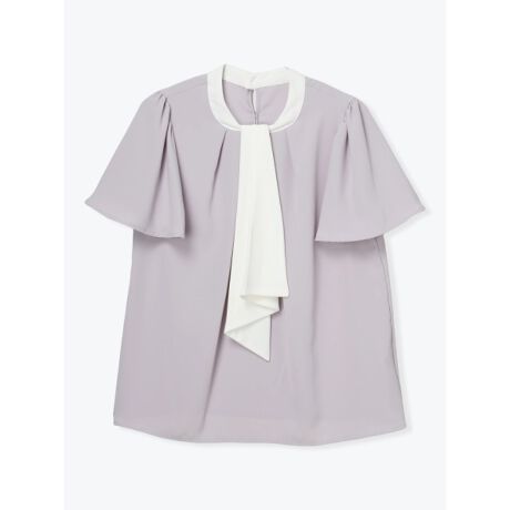 配色切り替え半袖ボウタイブラウス
